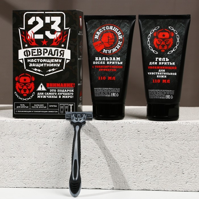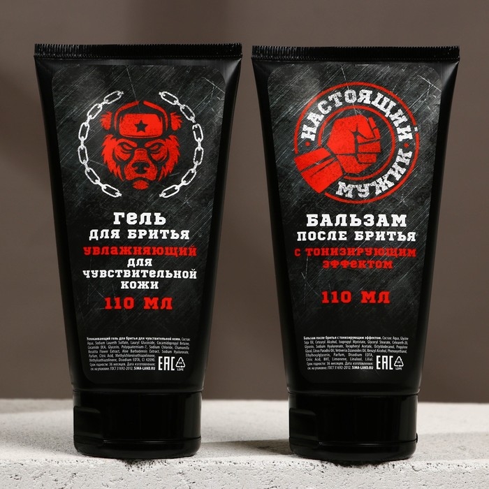 Подарочный набор косметики «Настоящий мужик», гель для бритья 110 мл, бальзам после бритья 110 мл, бритва, HARD LINE