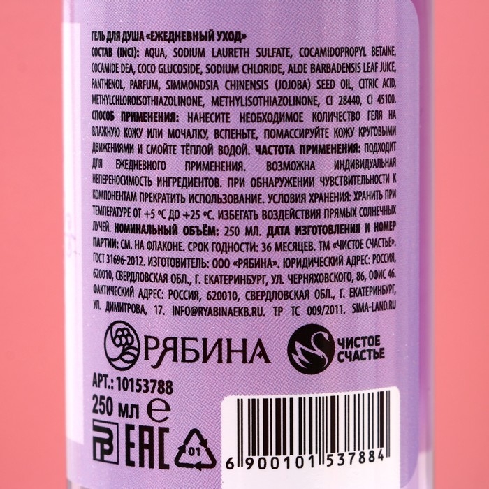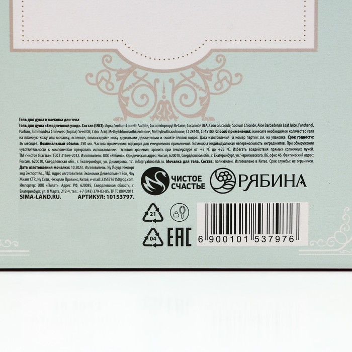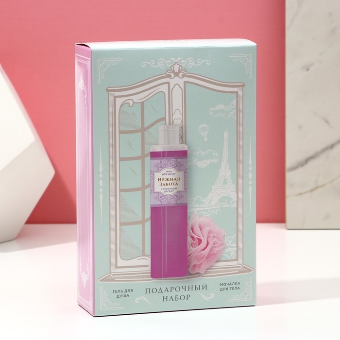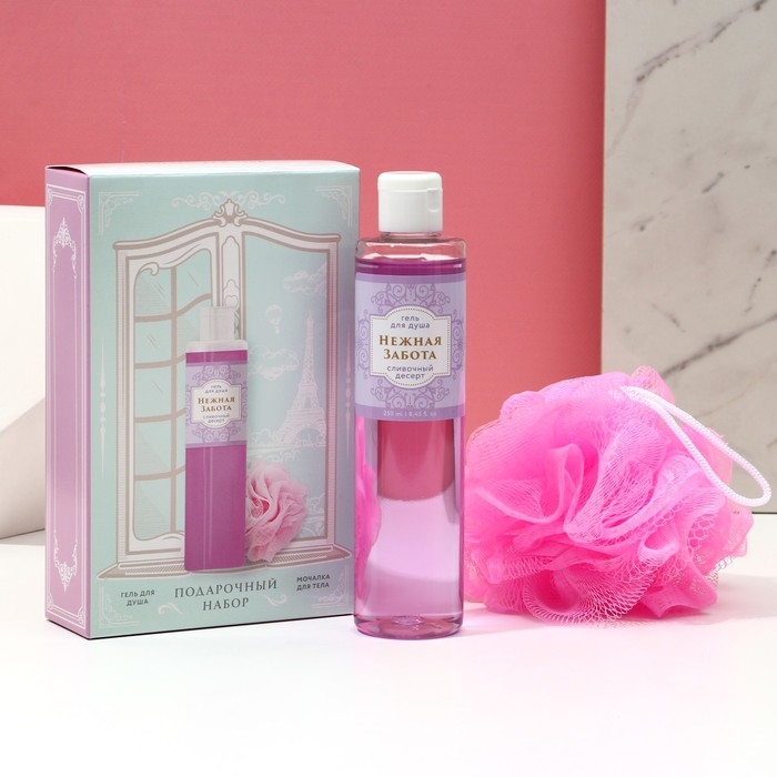 Подарочный набор косметики «Нежная забота», гель для душа 250 мл и мочалка для тела, ЧИСТОЕ СЧАСТЬЕ