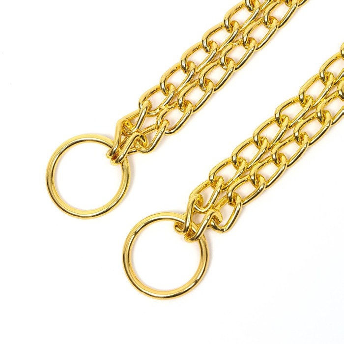 Ошейник - удавка металлический двухрядный, 45 см, толщина проволоки 2 мм, золотистый