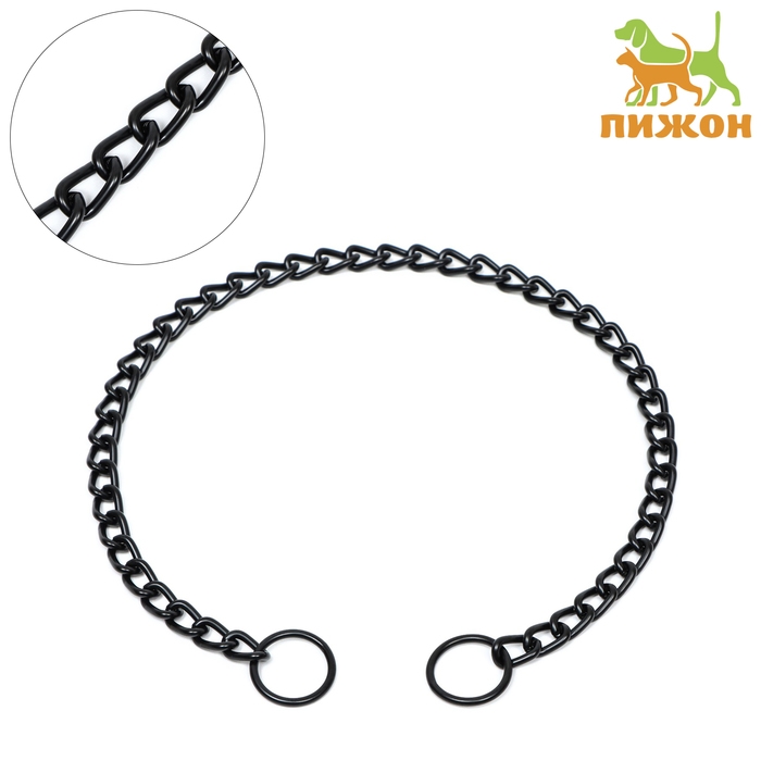 Ошейник - удавка металлический однорядный, 55 см, толщина проволоки 2,5 мм, черный