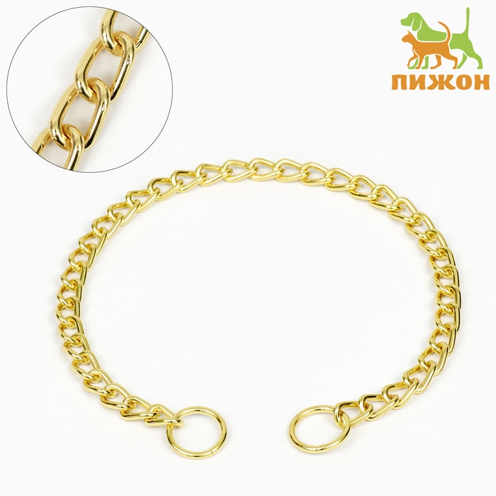 Ошейник - удавка металлический однорядный, 65 см, толщина проволоки 3,5 мм, золотистый
