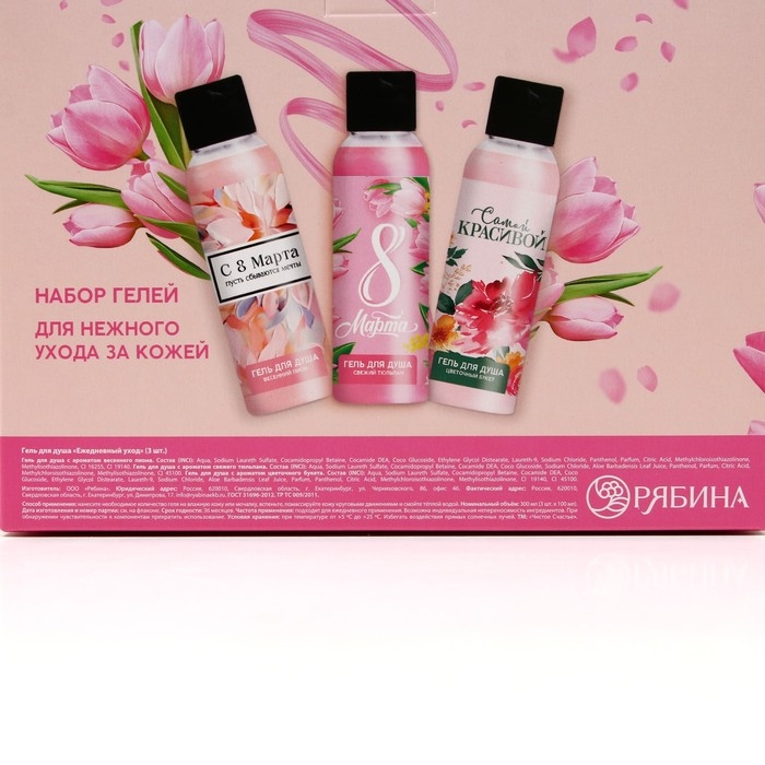 Подарочный набор косметики «Весна в сердце!», гель для душа 3 х 100 мл, ЧИСТОЕ СЧАСТЬЕ