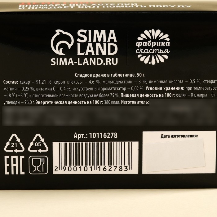 Конфеты-таблетки в таблетнице «Настоящий мужик», 50 г.