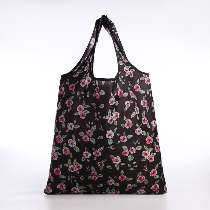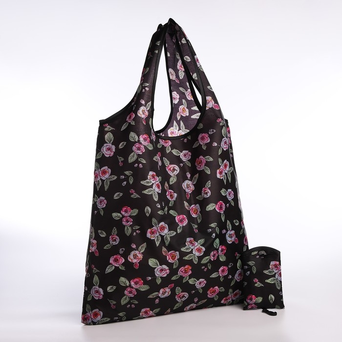 Сумка хозяйственная без застёжки, складная, цвет чёрный/розовый