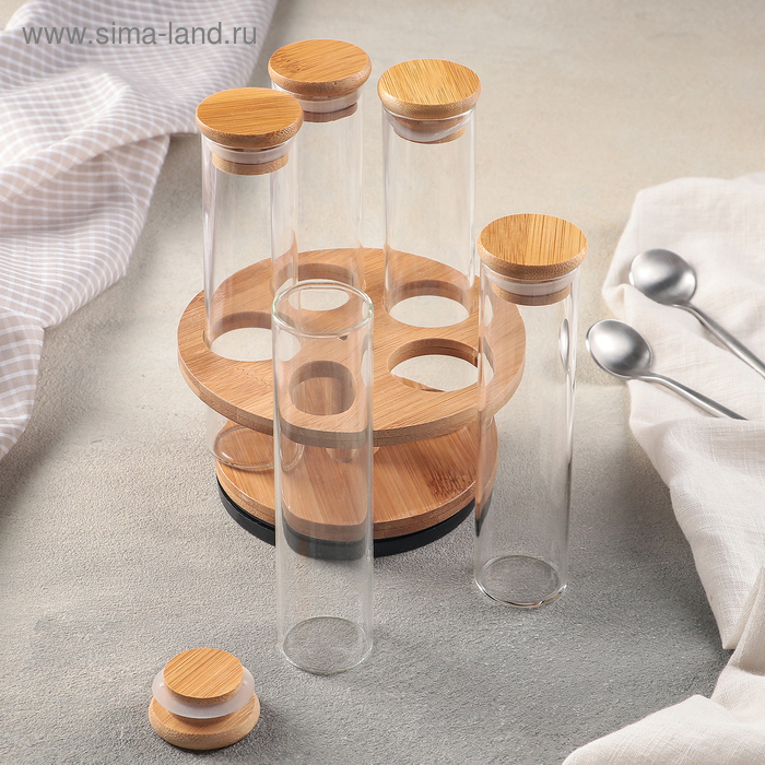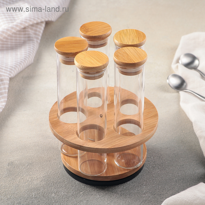 Набор для специй из стекла на подставке «Эко», 100 мл, 4×14 см, 5 шт