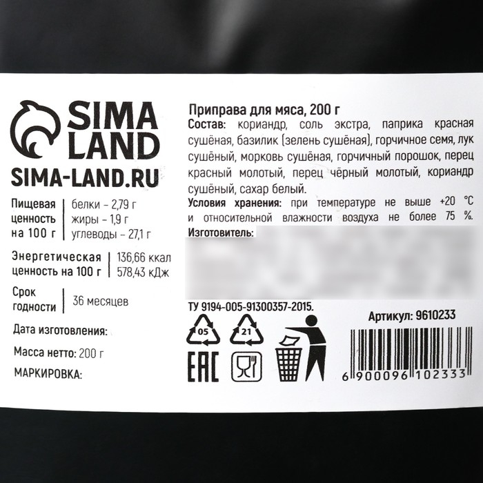 Специи «Для мяса»: кориандр, паприка, базилик, 200 г.