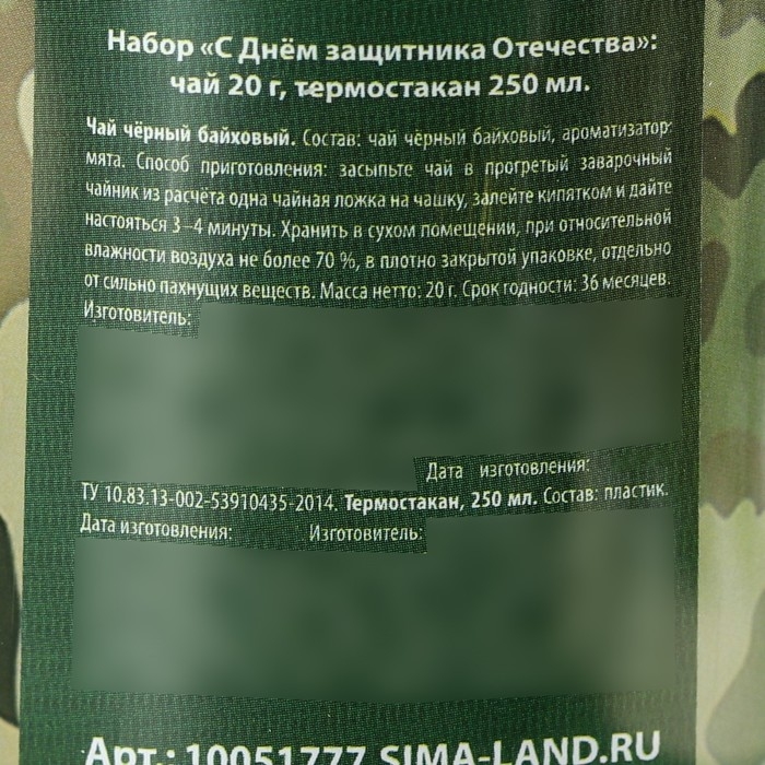Чай в термостакане «С днём защитника отечества», 20 г.