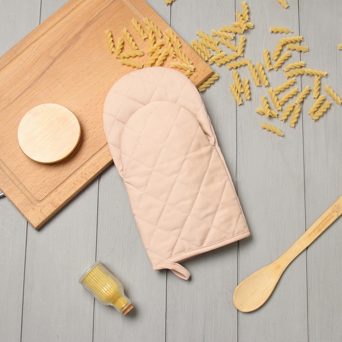 Варежка-прихватка Этель "Kitchen" цв.бежевый, 15х28см,саржа, 100% х/л
