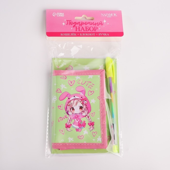 Подарочный набор для девочки «Аниме», кошелёк, блокнот, ручка