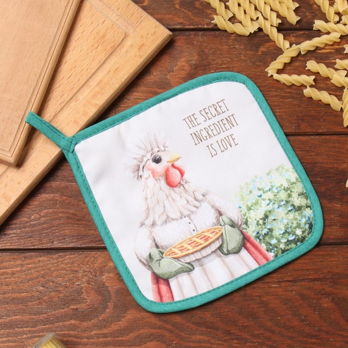 Прихватка Доляна "Курочка" 17х17 см, 35% хл, 65% пэ, ватин 250 г/м2