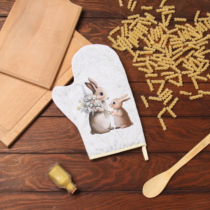 Варежка-прихватка Доляна "Зайчата" 20х28 см, 35% хл, 65% пэ, ватин 250 г/м2