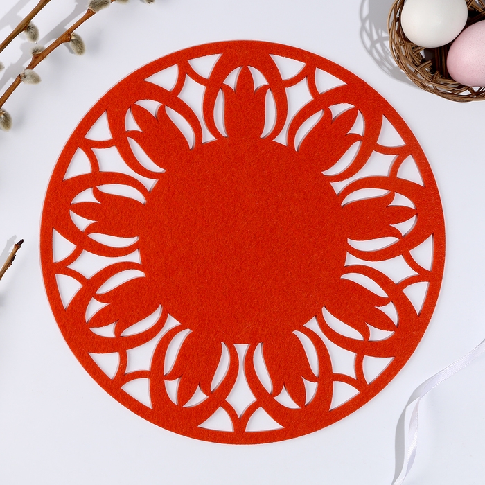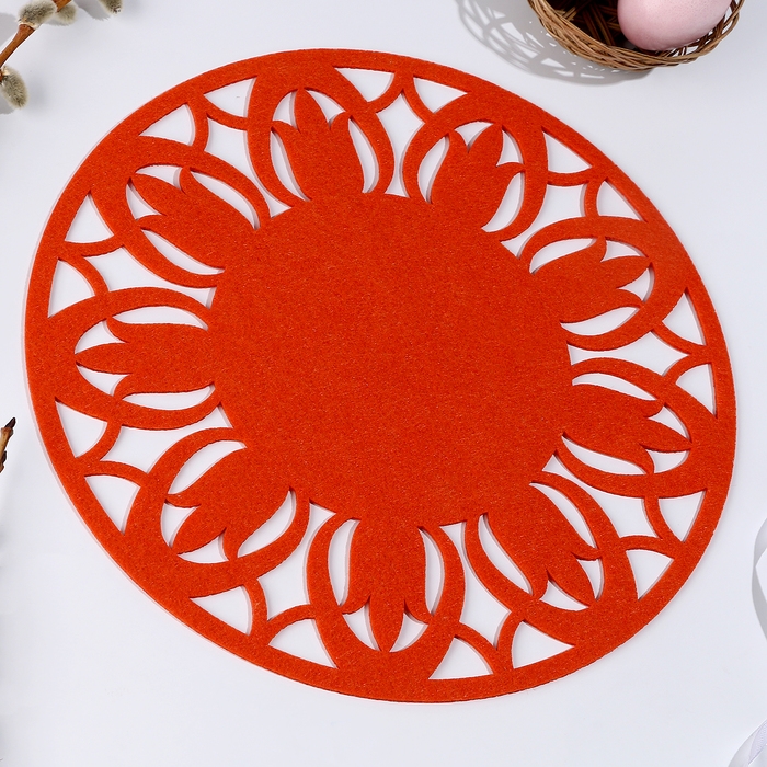 Салфетка ХВ "Цветок", для сервировки, цвет морковный, фетр, 28 см х 28 см