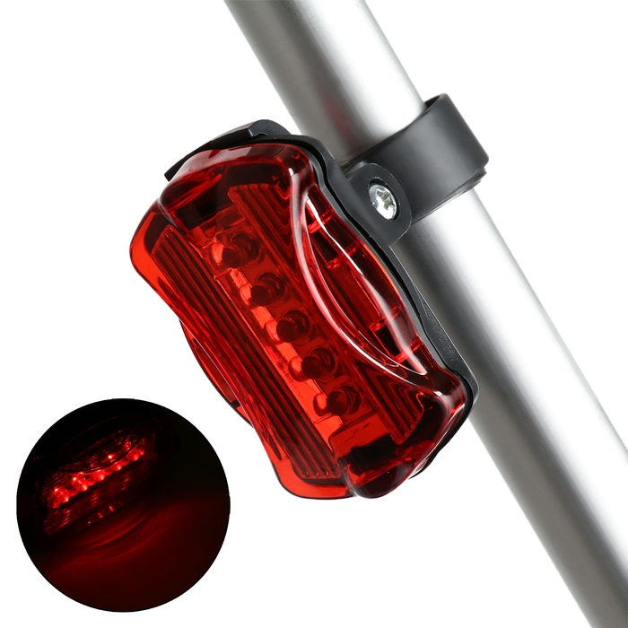 Фонарь велосипедный задний, водонепроницаемый, 5 диодов, 7 режимов, 2ААА