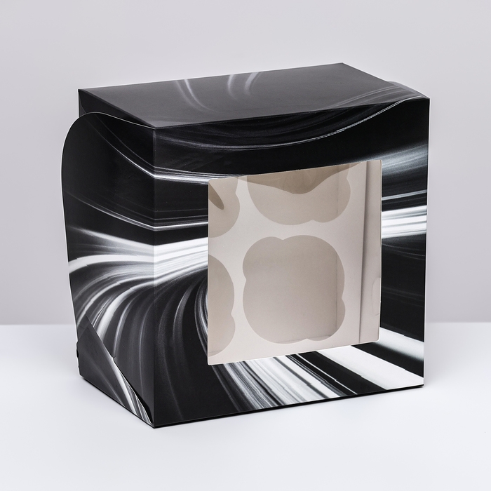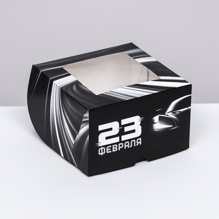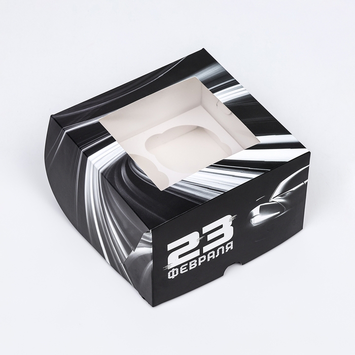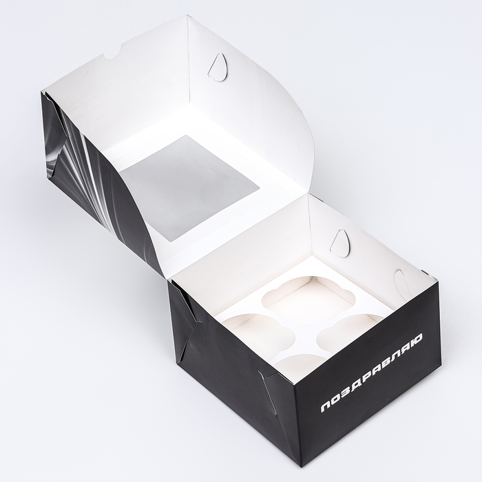 Коробка для 4 капкейков с окном , "Мужской", 16 х 16 х 10 см