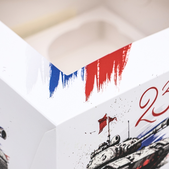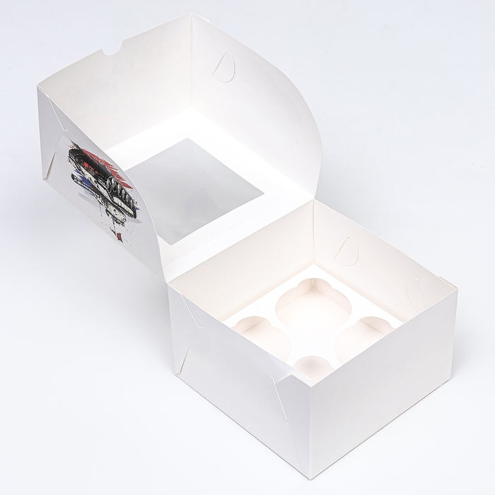 Коробка для 4 капкейков с окном , "С 23 февраля", 16 х 16 х 10 см
