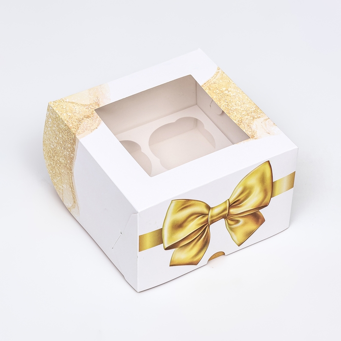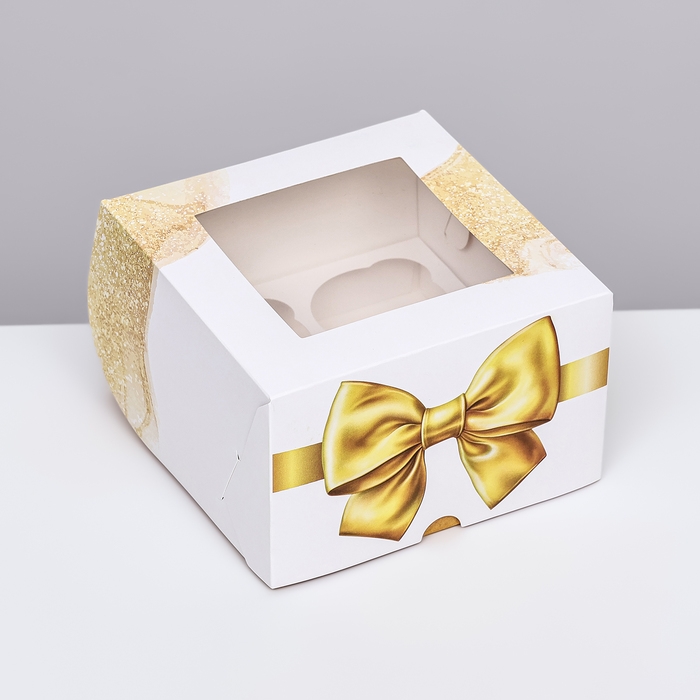 Коробка для 4 капкейков с окном , "Бант", 16 х 16 х 10 см