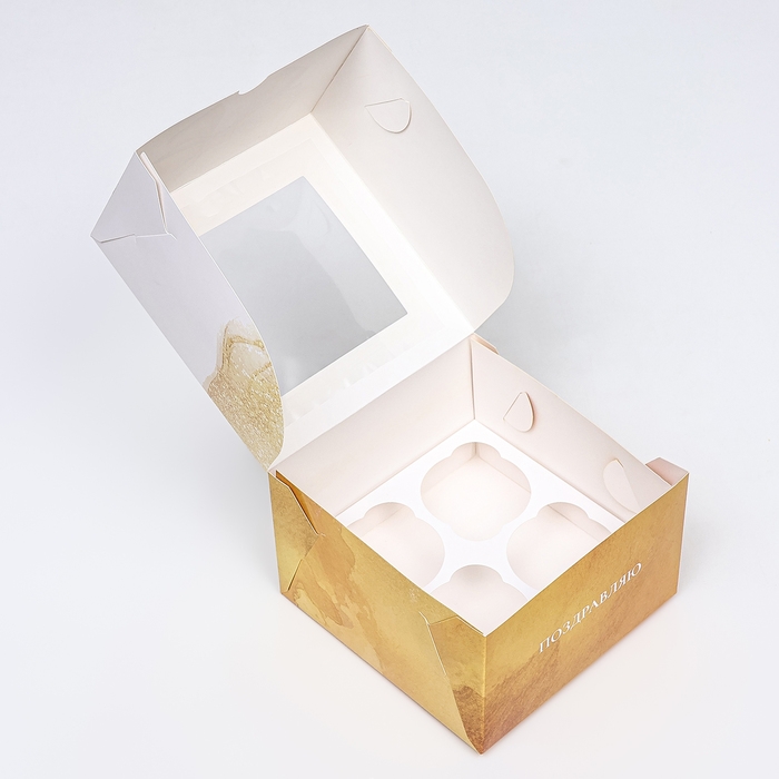 - Рассчитана на 4 капкейка - коробка оснащена специальными отделениями под каждый капкейк;