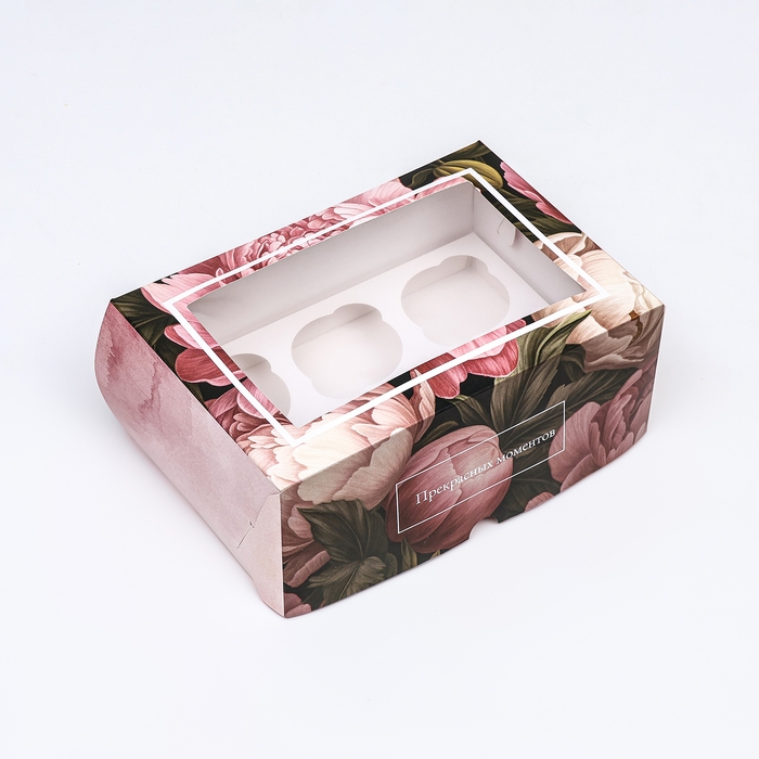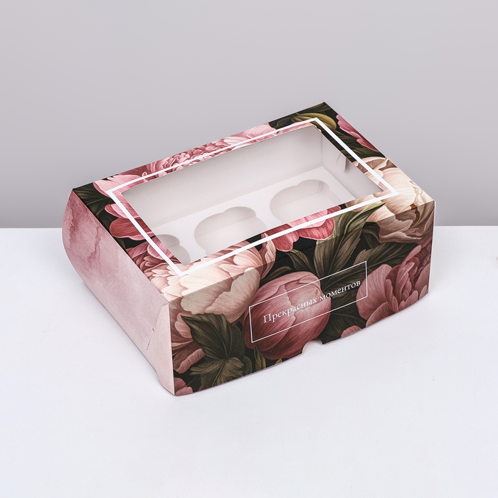 Коробка для 6 капкейков с окном , "Прекрасных моментов", 25 х 17 х 10 см