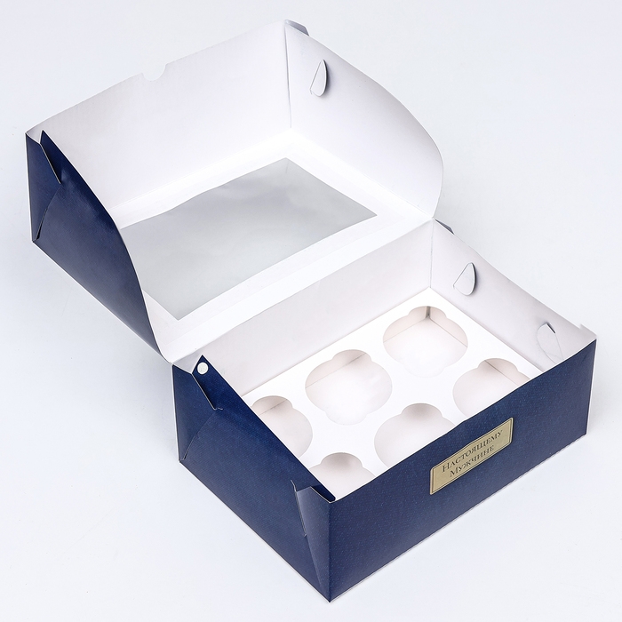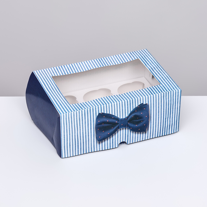 Коробка для 6 капкейков с окном , "длястоящему мужчине", 25 х 17 х 10 см