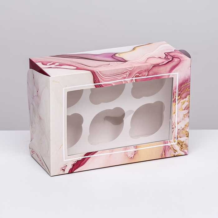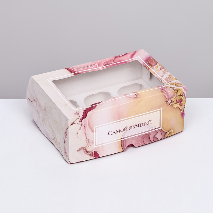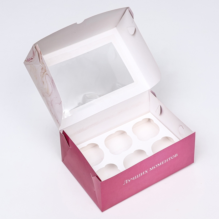 Коробка для 6 капкейков с окном , "Лучших моментов", 25 х 17 х 10 см