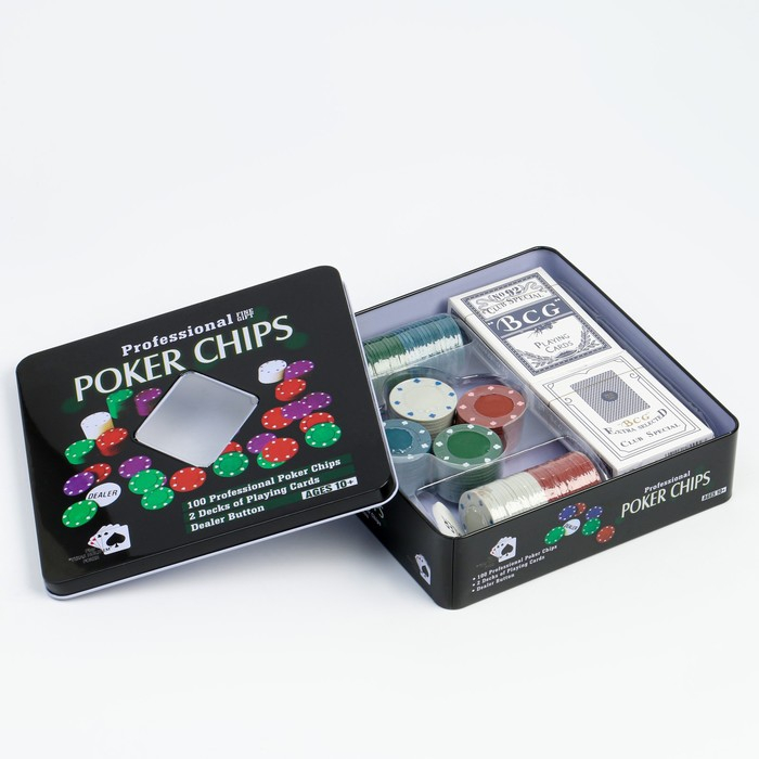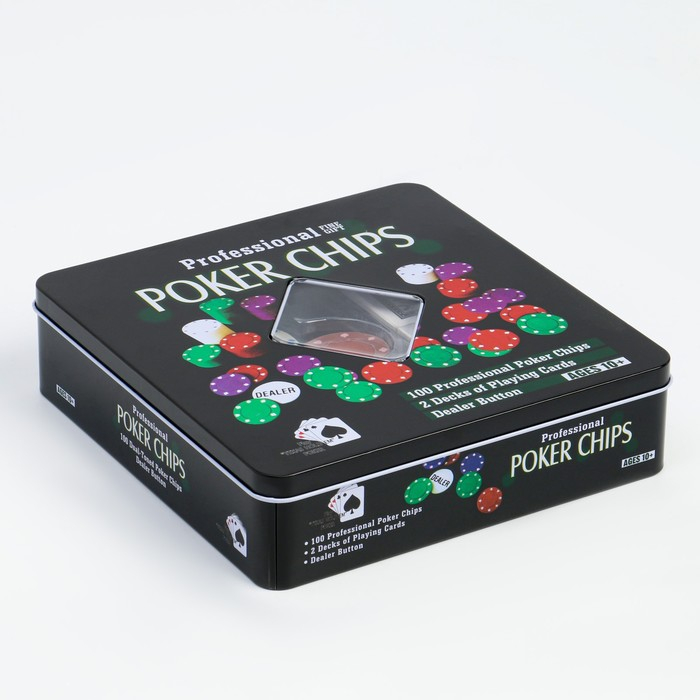 Покер, набор для игры (карты 2 колоды, фишки 100 шт.), без номинала 20 х 20 см