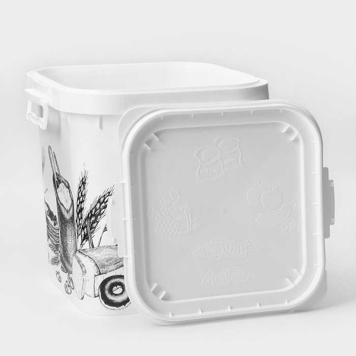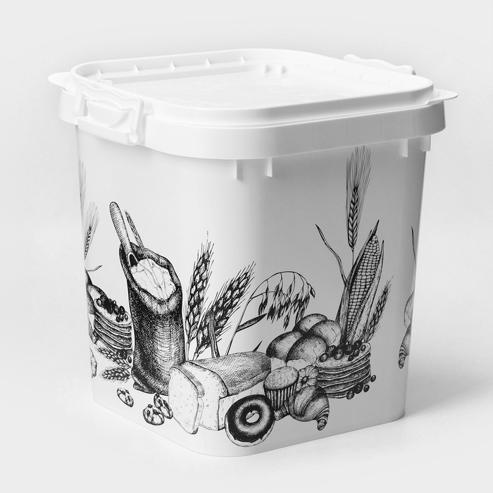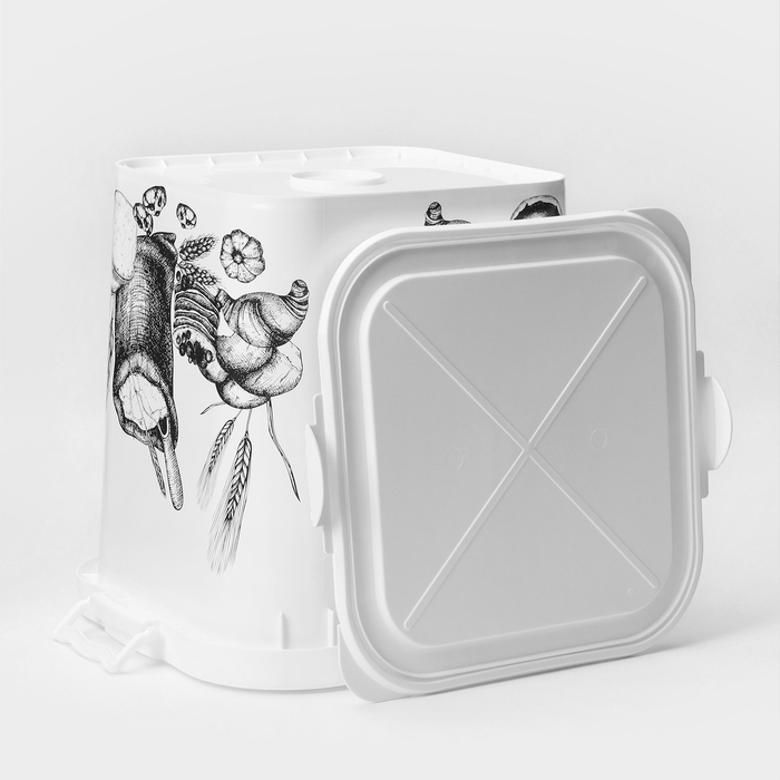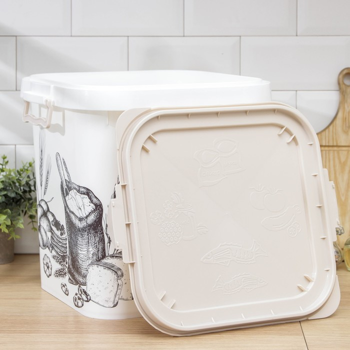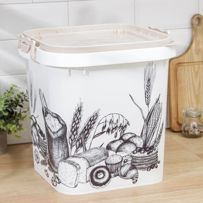 Ёмкость для муки и сахара, 25 л, с декором, цвет белый
