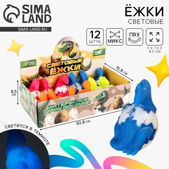 Мяч детский резиновый ёжка световой «Динозаврик», цвета МИКС , в шоубоксе