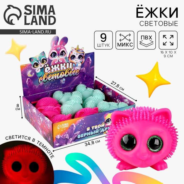 Мяч детский резиновый ёжка световой «Большие глазки», цвета МИКС , в шоубоксе