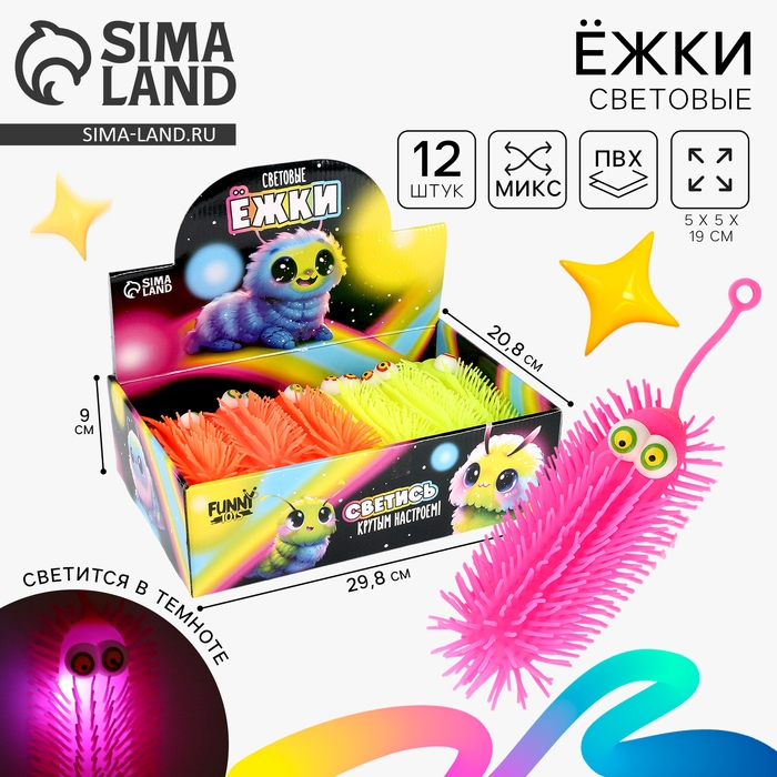 Мяч детский резиновый ёжка световой «Гусеничка», цвета МИКС , в шоубоксе