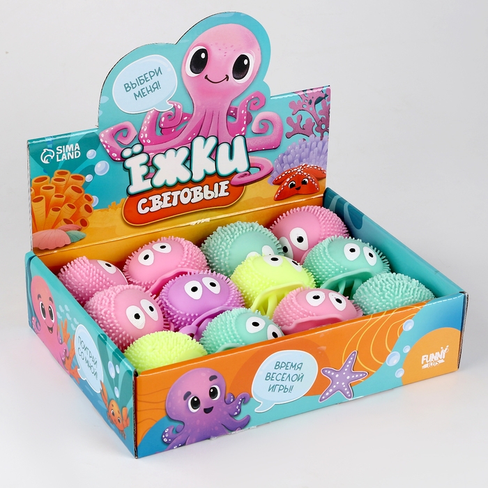Мяч детский резиновый ёжка световой «Осьминог», цвета МИКС , в шоубоксе