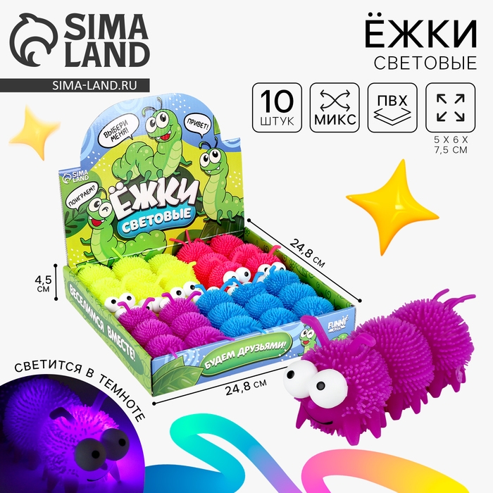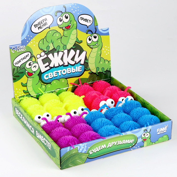 Мяч детский резиновый ёжка световой «Гусеница», цвета МИКС , в шоубоксе