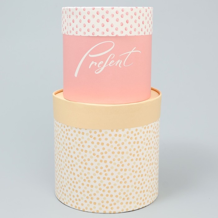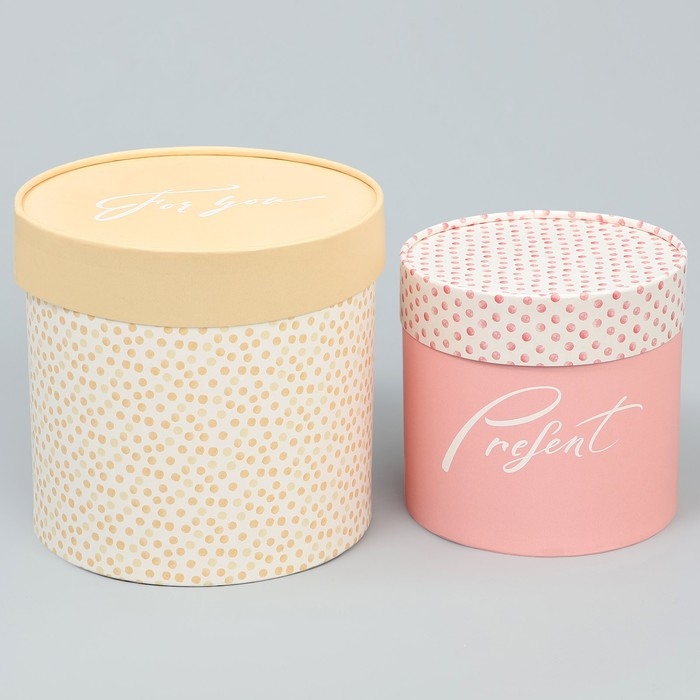 Набор шляпных коробок 2 в 1, упаковка подарочная, «Точки», 13 х 13 см, 16 х 16 см