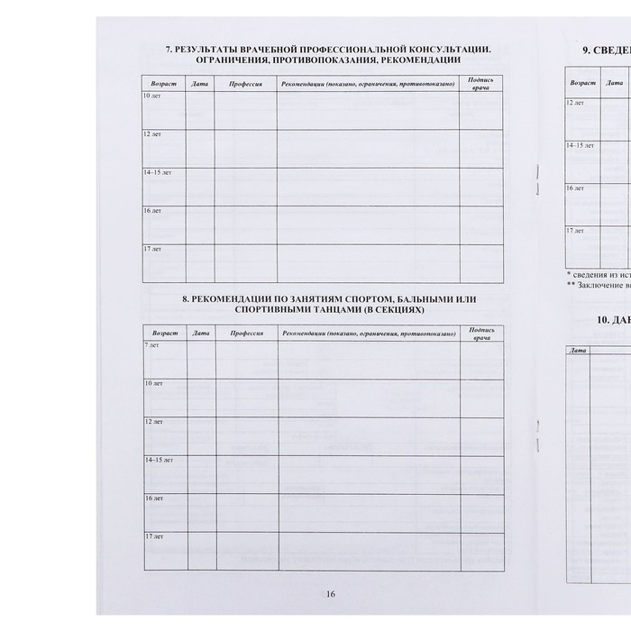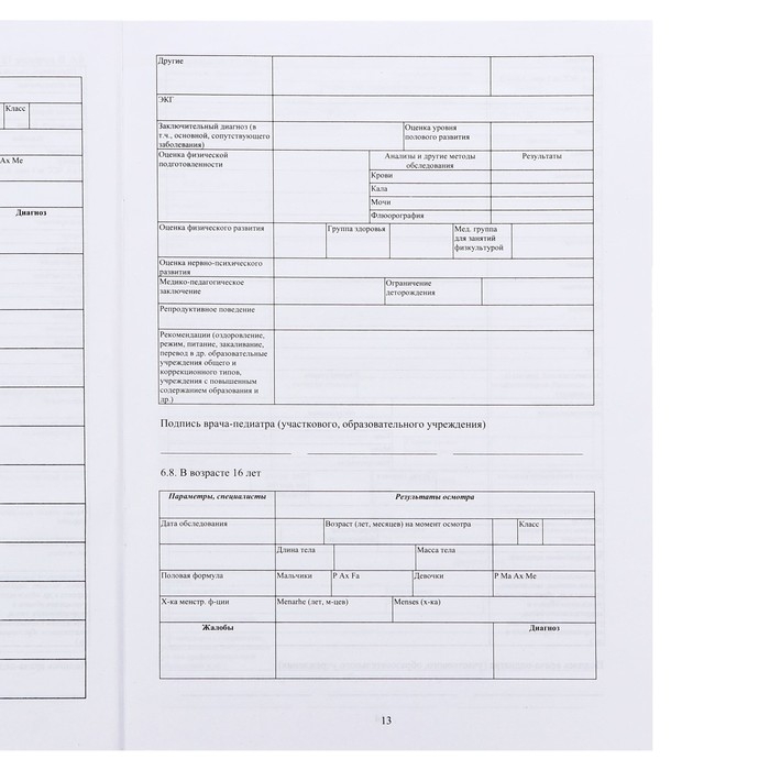 Медицинская карта ребёнка А4, 16 листов, обложка - мелованный картон 215 г/м², блок офсет 65 г/м². Форма № 026/у-2000