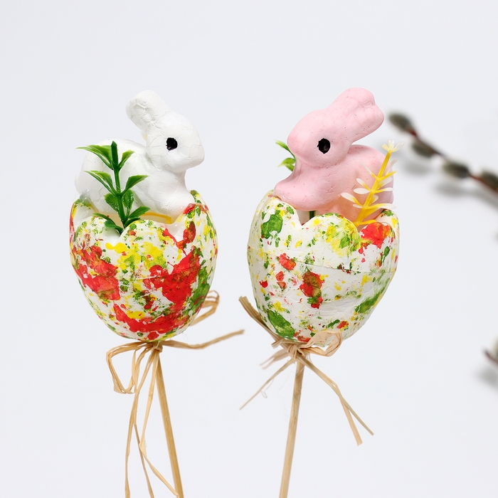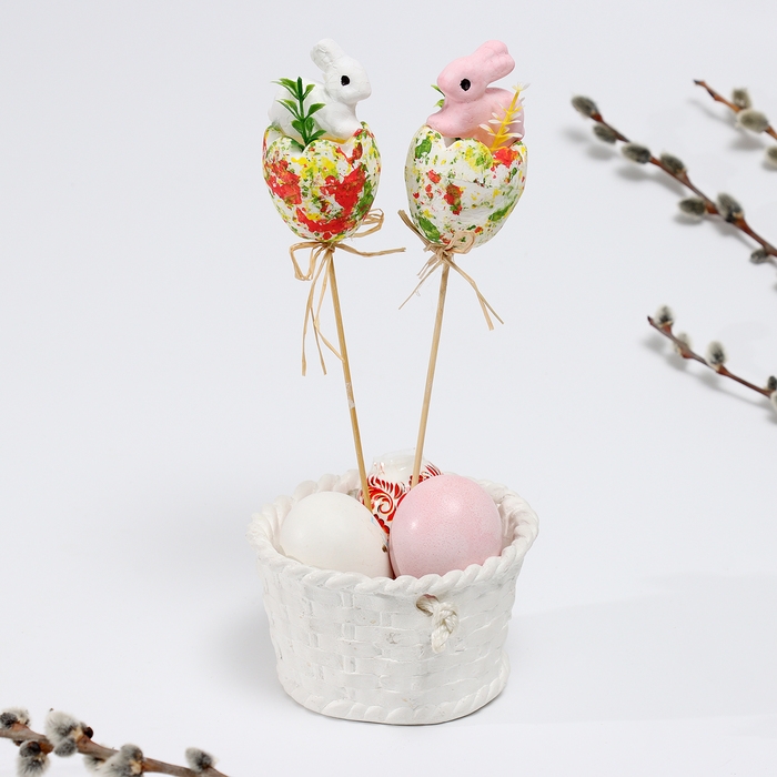 Декор на палочке пасхальный «Зайцы» 5 × 10 × 25 см