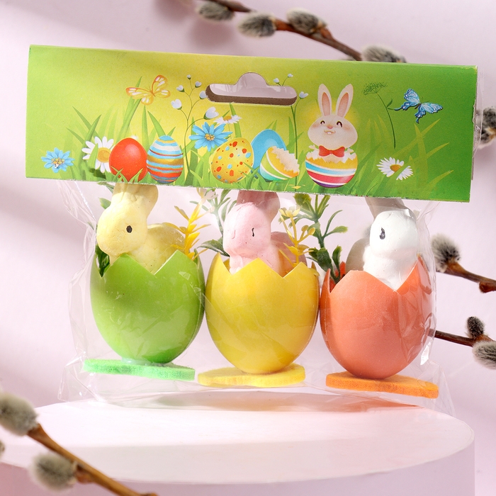 Набор для декора пасхальный «Зайчики» 3 шт., 4 × 11,5 × 6,5 см