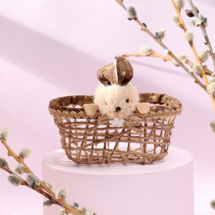 Декоративная пасхальная корзинка «Зайка», 7 × 14 × 13 см