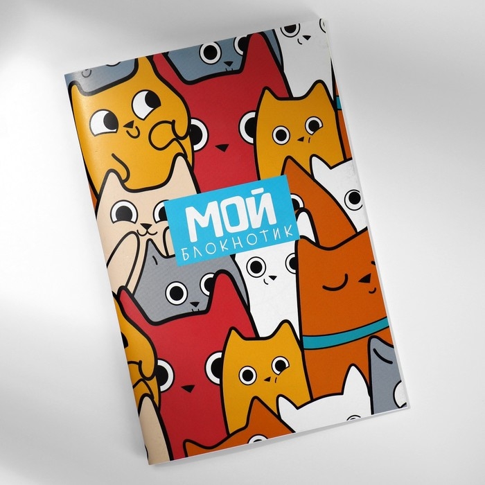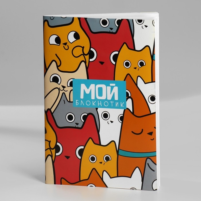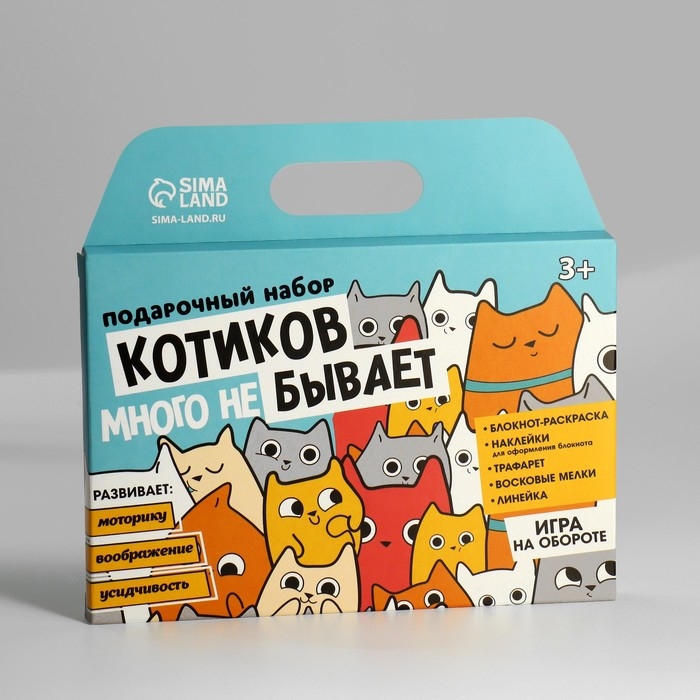Подарочный набор блокнот-раскраска, трафарет, наклейки и восковые мелки «Котиков много не бывает»