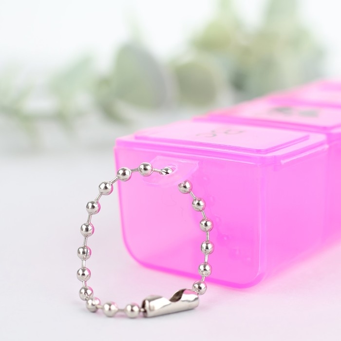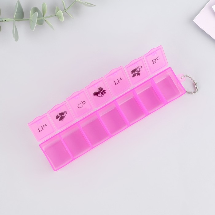 Таблетница на неделю с цепочкой, 7 секций, розовая, русские буквы, 15 х 3 х 2 см.