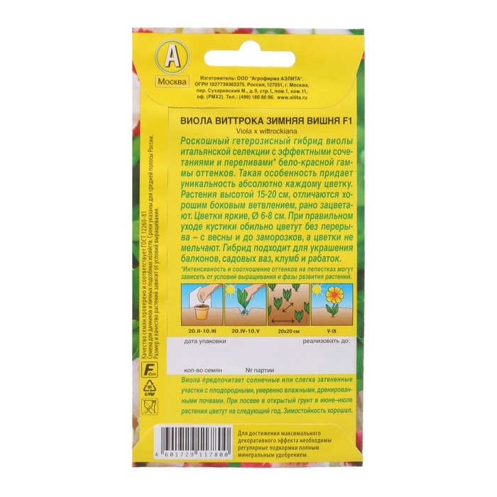 Семена цветов Виола "Махровое кружево", ц/п, 4 шт.