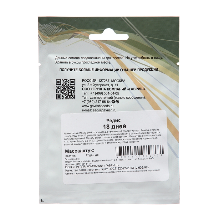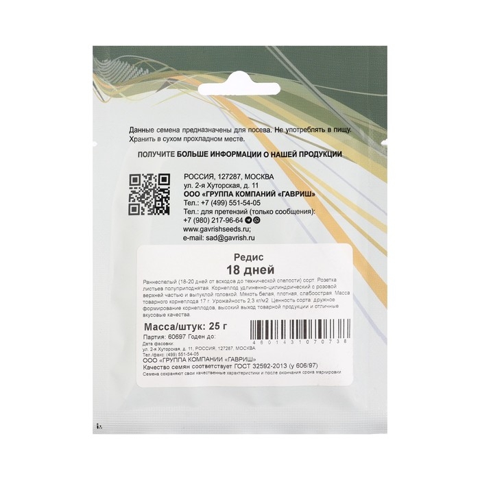 Семена Редис "18 дней", 25 г