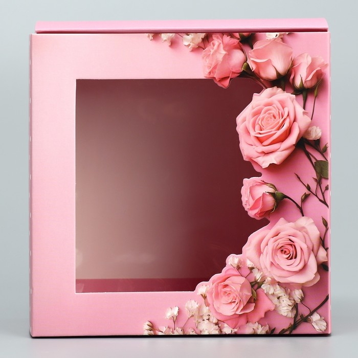 Коробка-фоторамка подарочная складная, упаковка, «Нежные розы», 14 х 14 х 8 см
