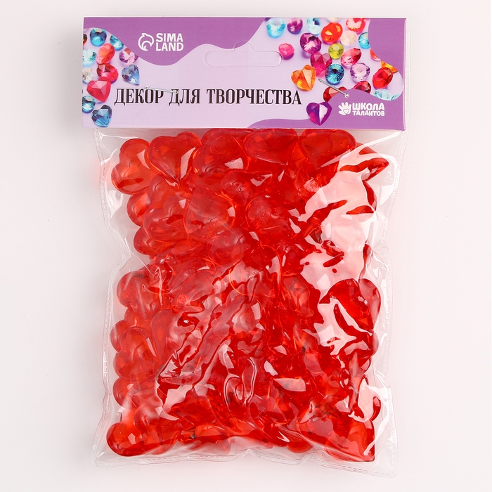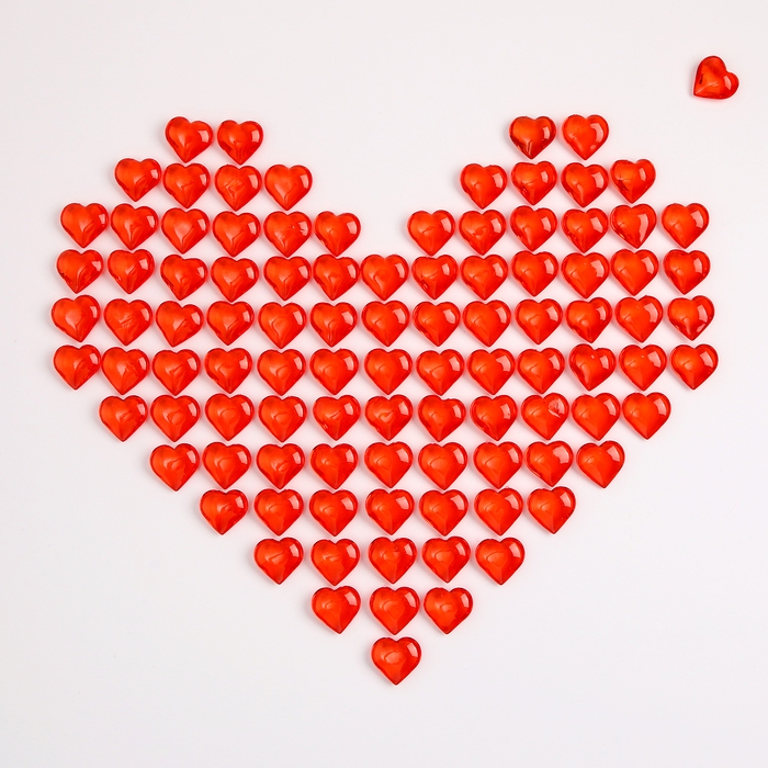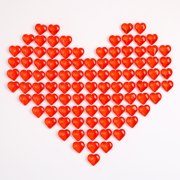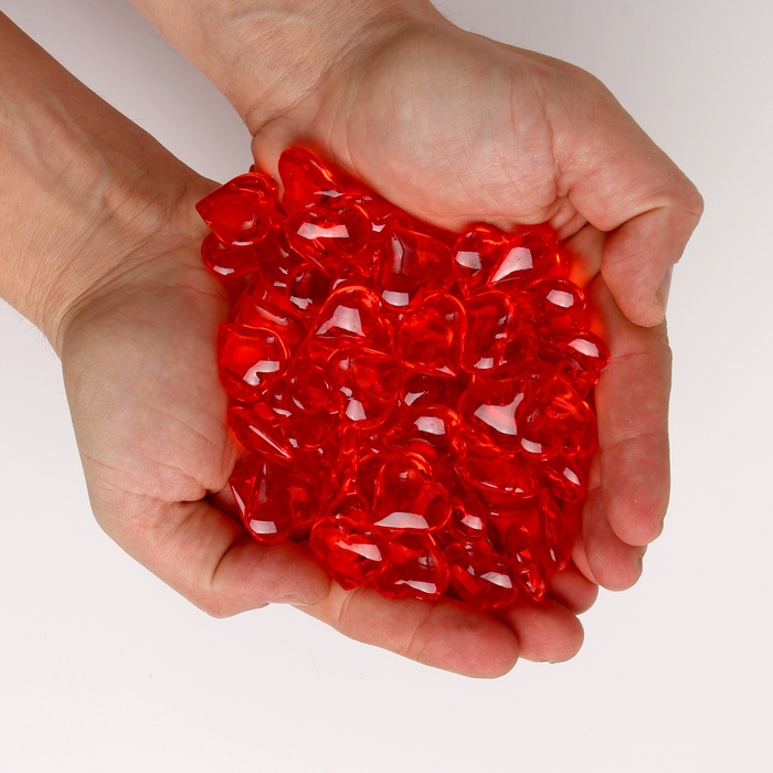 Сердечки пластиковые декоративные, набор 100 шт., размер 1 шт. — 2 × 2 см, цвет красный