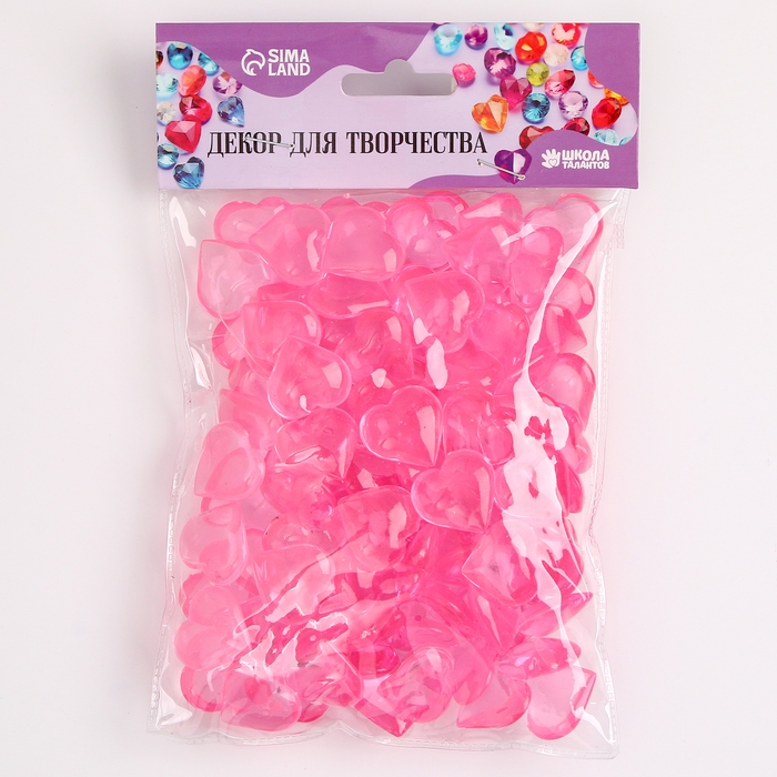 Сердечки пластиковые декоративные, набор 100 шт., размер 1 шт. — 2 × 2 см, цвет розовый