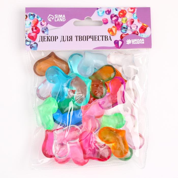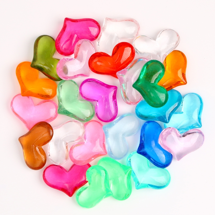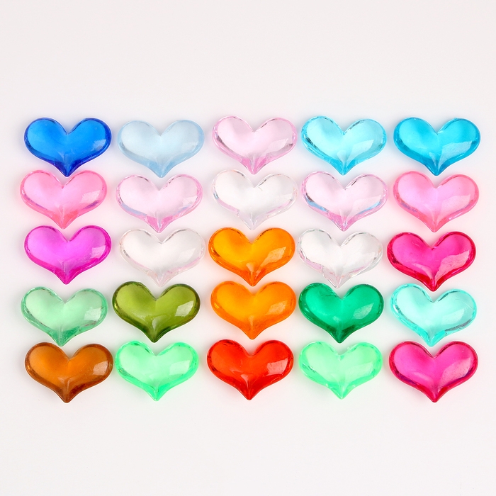 Сердечки пластиковые декоративные, набор 25 шт., размер 1 шт. — 3 × 3,5 см, цвет МИКС