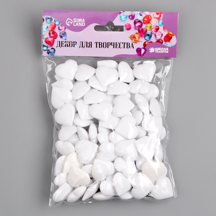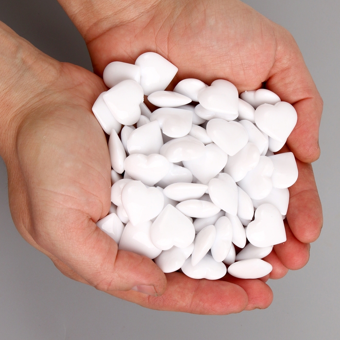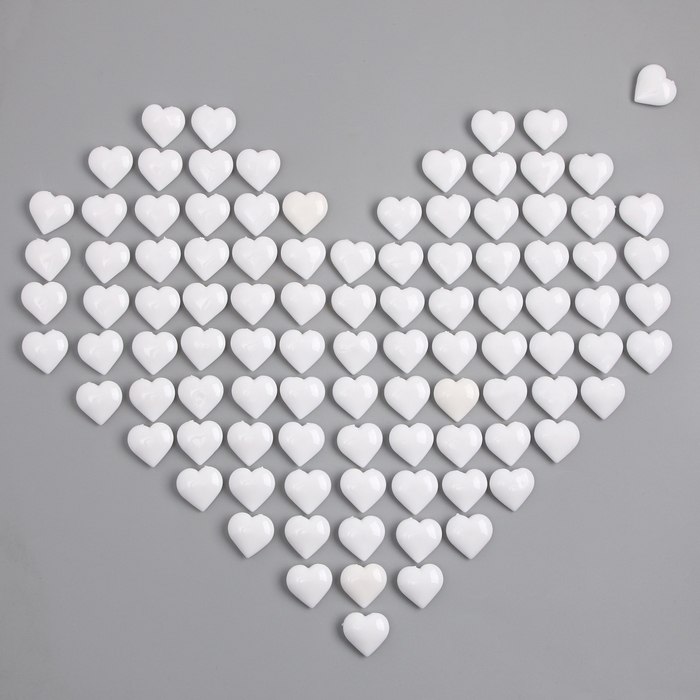 Сердечки пластиковые декоративные, набор 100 шт., размер 1 шт. — 2 × 2 см, цвет белый
