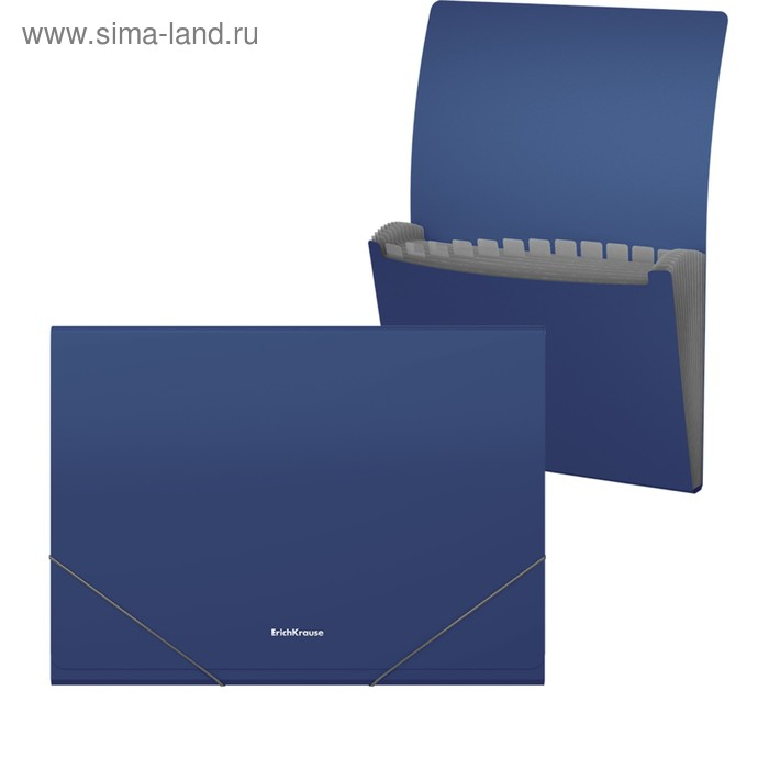 Папка-картотека на резинке A4, 12 отделов, ErichKrause Matt Classic, синяя