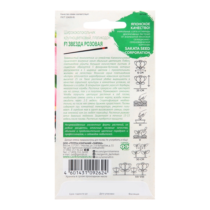 Семена Ширококолокольчик "Звезда розовая" , F1 4 шт.