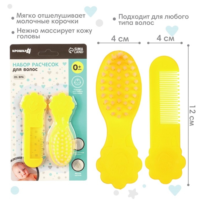 Расческа-щетка с мягкой щетиной и удобная расческа с закругленными зубчиками предназначены для малышей с первых дней жизни.
