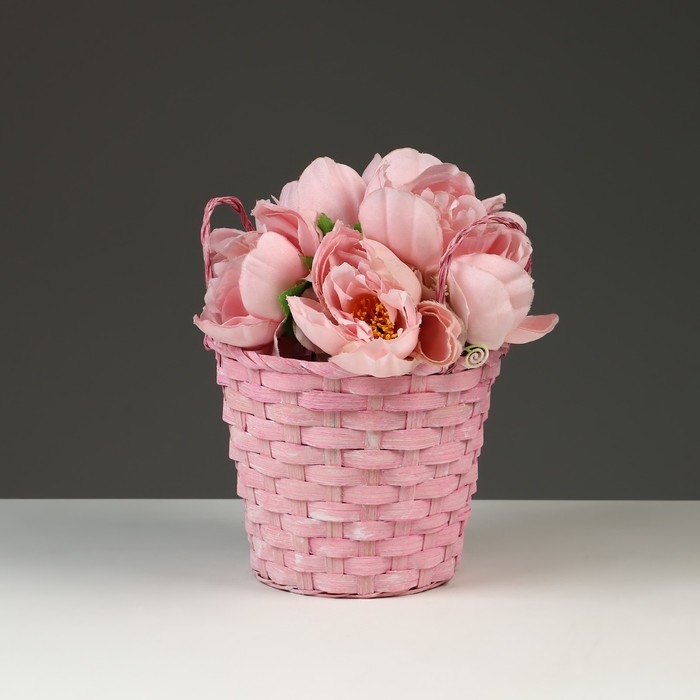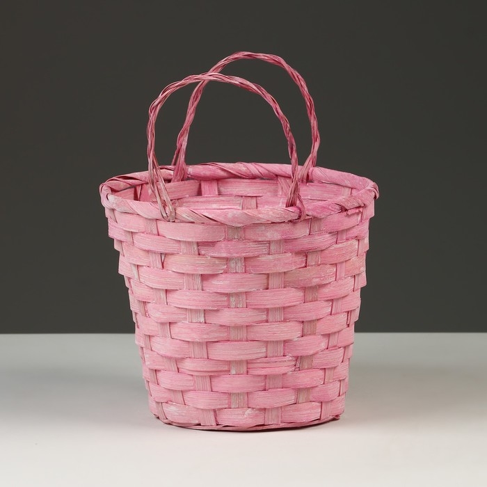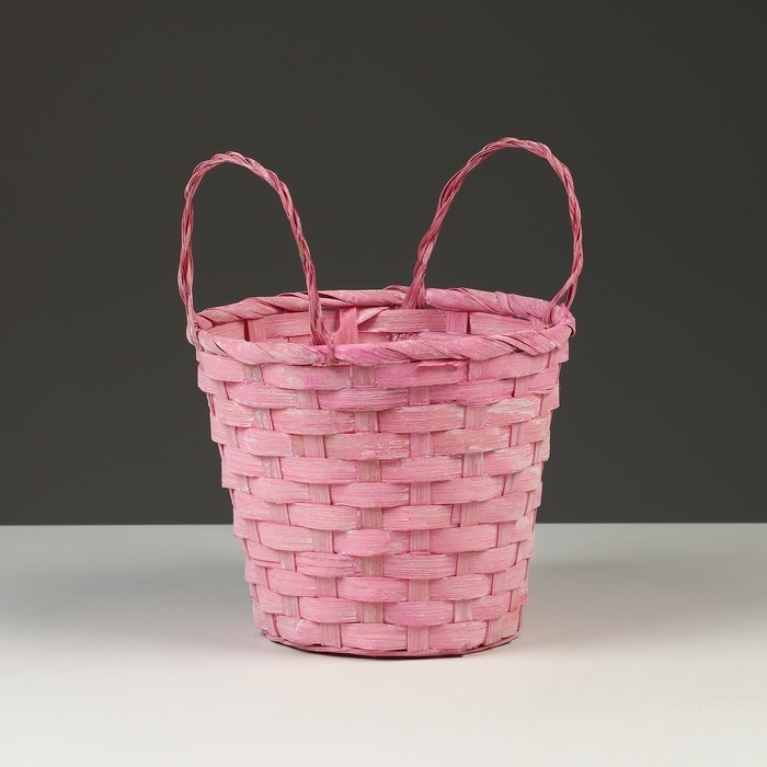 Корзина плетеная, D16 х 13,5 х 20 см, розовая, бамбук
