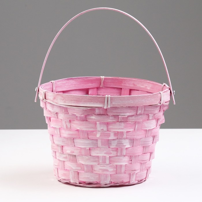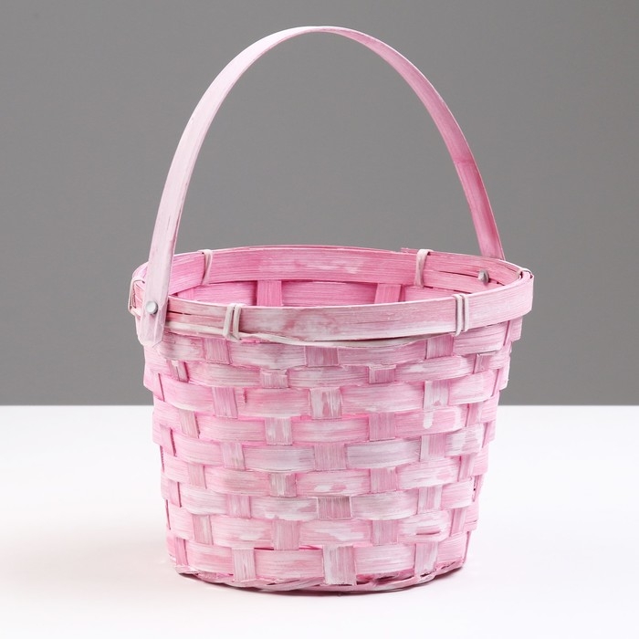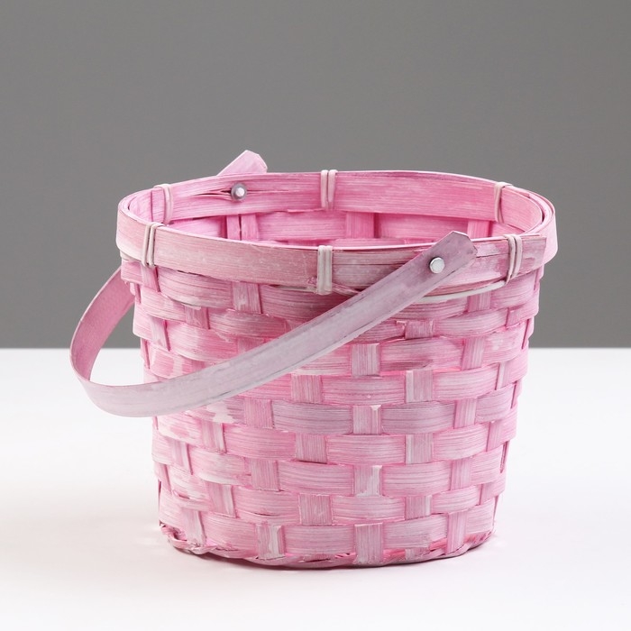 Корзина плетеная, D17 х 12 х 22 см, розовая, бамбук